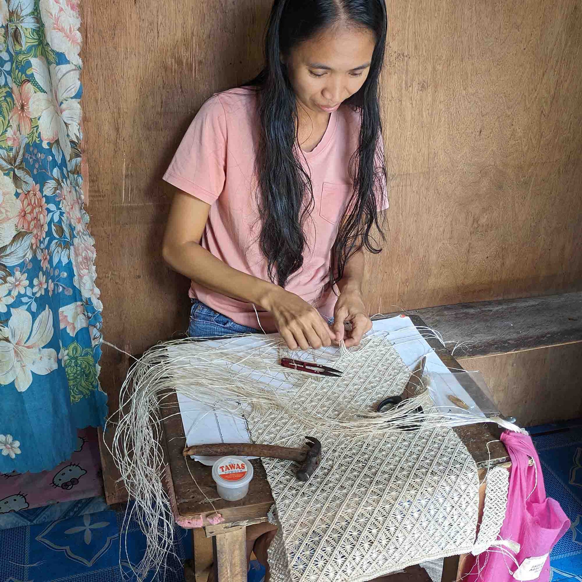フィリピン中部のパナイ島、マリナオの San Ramon Abaca Handicraft Association に所属する職人の中でもトップ15 人の手仕事による[M+abaca]ブランドのかごバッグ。村に自生するアバカの栽培管理、伐採、繊維を撚って糸にし、マクラメ編みで製品にするまで一貫して行っています。サンラモン地区のアバカはフィリピン農務省からファーストクラスの認定を受けている、白くてしなやかな最高品質の素材。栽培の管理、伐採して繊維を取り出し、撚って糸にし、マクラメ編みで製品にするまで一貫して行っています。<M+abaca>の商品が天然素材による100%ハンドメイドであることはマリナオ市長が保証するものです。