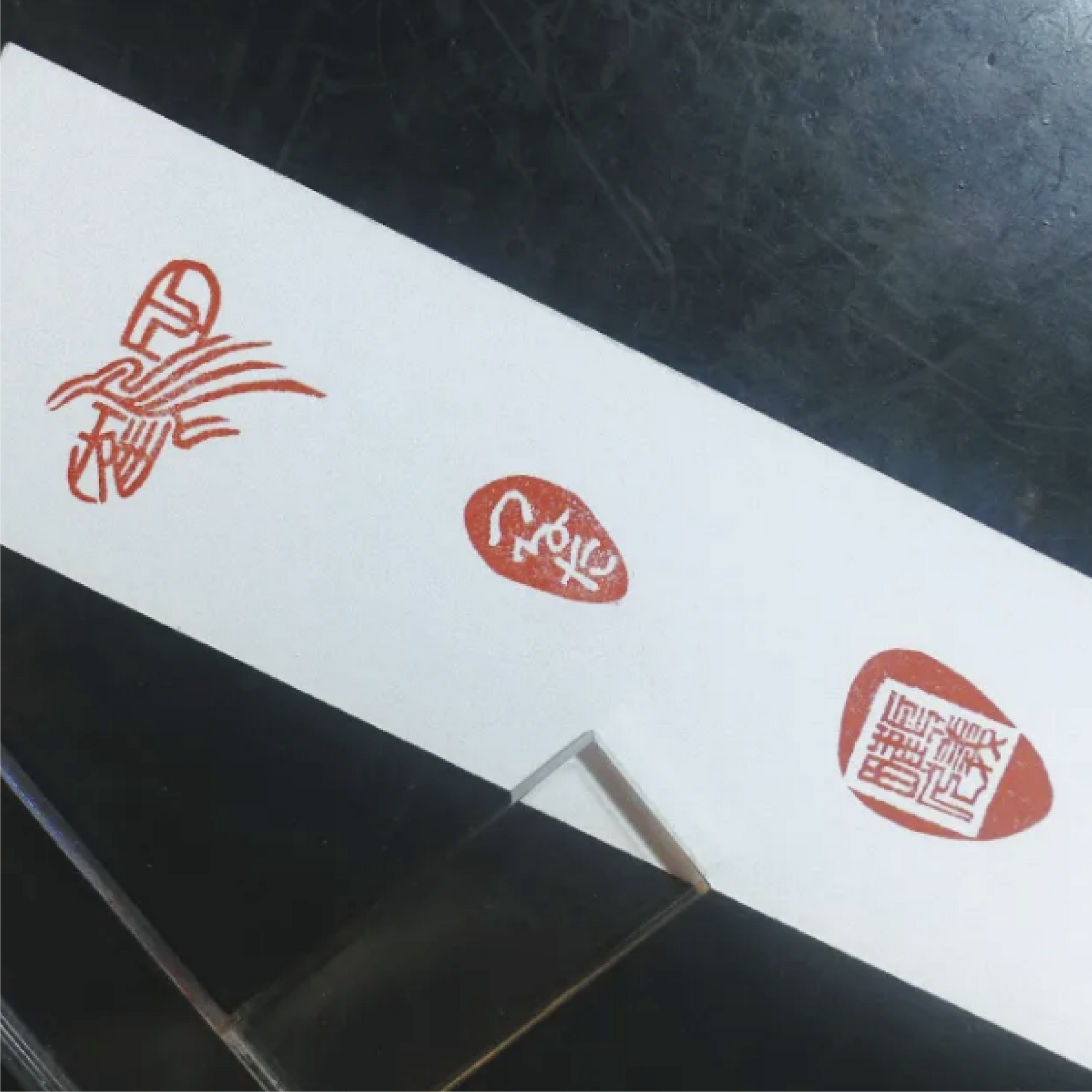 その場で資料を見ながらデザインから始めます。もちろん、事前にデザインを用意して彫ることに専念してもよし。気楽な雰囲気で、オリジナルの印を刻んでください。